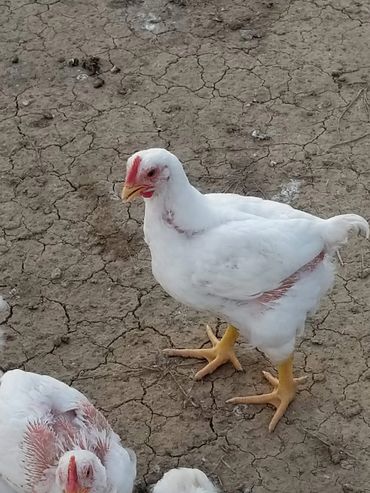 We raise natural grass fed broiler chickens. No hormones or medicated feed are used. Ours are very tasty, fresh, & tender. Each batch takes 9 weeks to raise & we usually have a few batches a year. This year we are doing one batch with slaughtering slated for October.