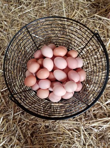 We are a poultry farm producing quality farm fresh eggs. Our hens are grass & fed with some feed that has no hormones or medicated feed. We give our chickens plenty of space to forage. We do not practice de-beaking or removing the tails, spurs, nor do we separate momma hens from their young if they have a hatching.
